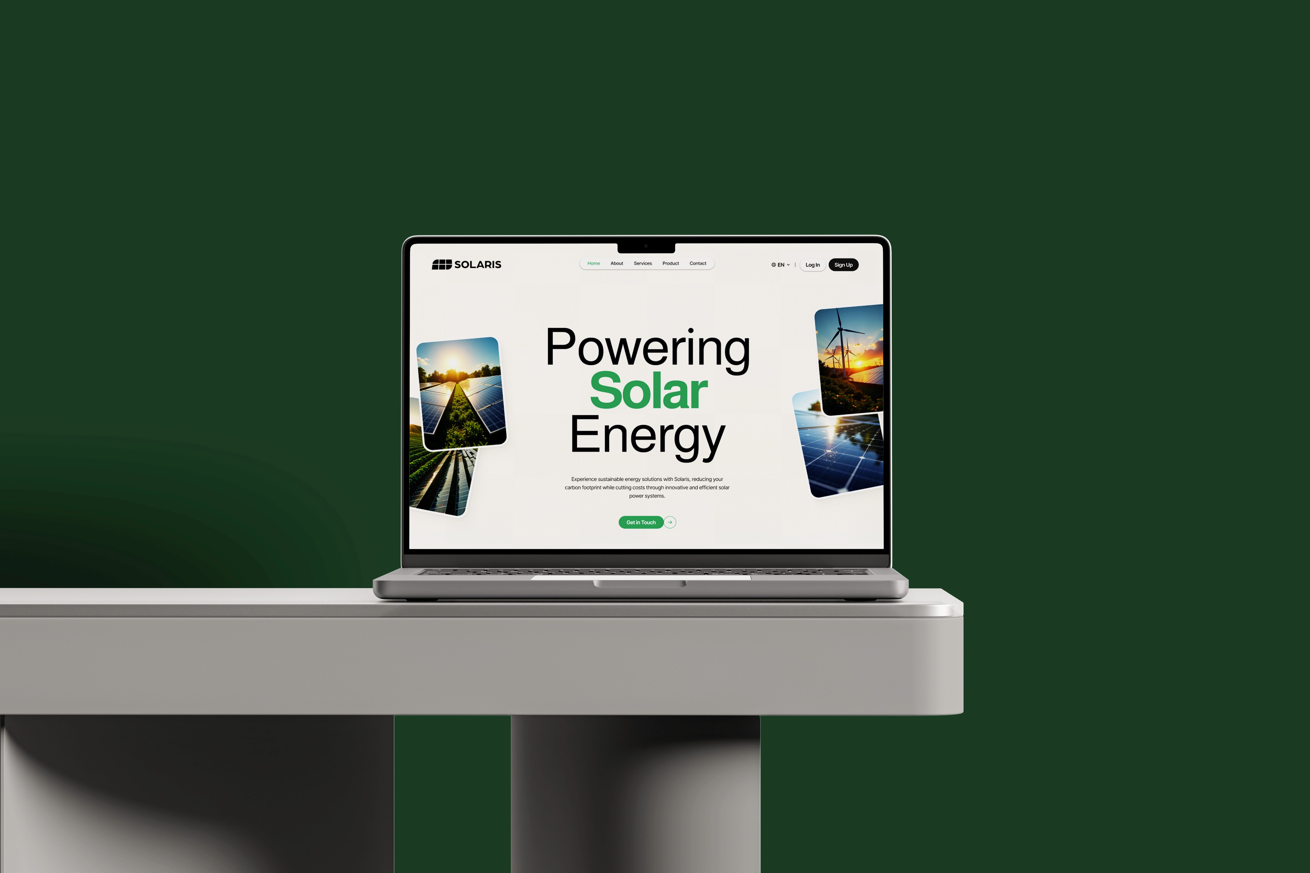 This conceptual case study imagines Solaris as a modern clean energy company in need of a strong, distinctive identity. The goal was to create a visual system that communicated innovation, technical expertise, and consumer trust, while feeling scalable and adaptable across both digital and physical applications.